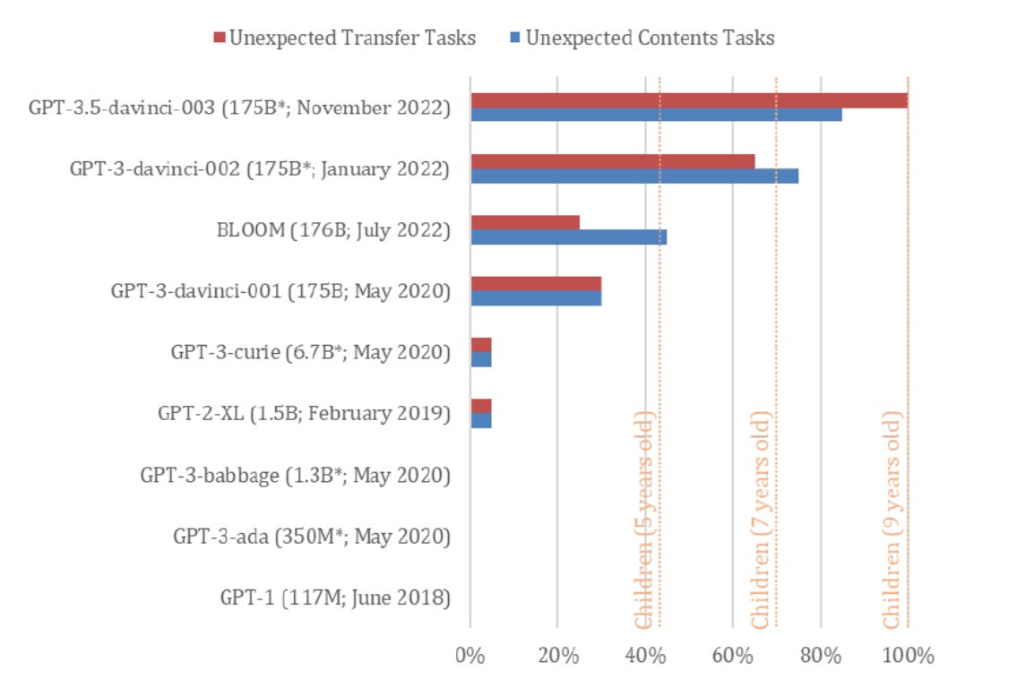 With AI models being trained on over 100 Billion parameters these days, their language capabilities are becoming nigh indistinguishable from humans. This has led one Stanford professor to believe that they may have spontaneously developed T.O.M. He ran a few experiments on a number of AI models and observed the latest models being very competent in completing the tasks. So much so, that the most advanced model we have can be compared to a 9 year old child.